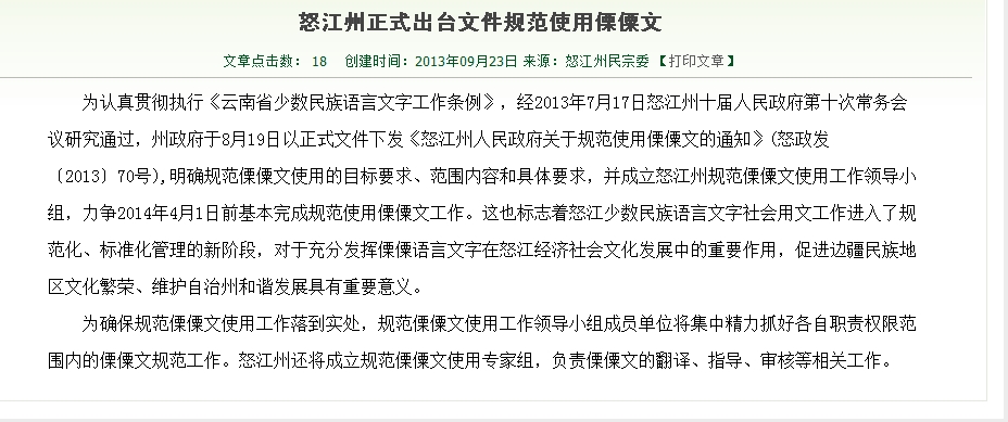 怒江州出台文件规范使用傈僳文