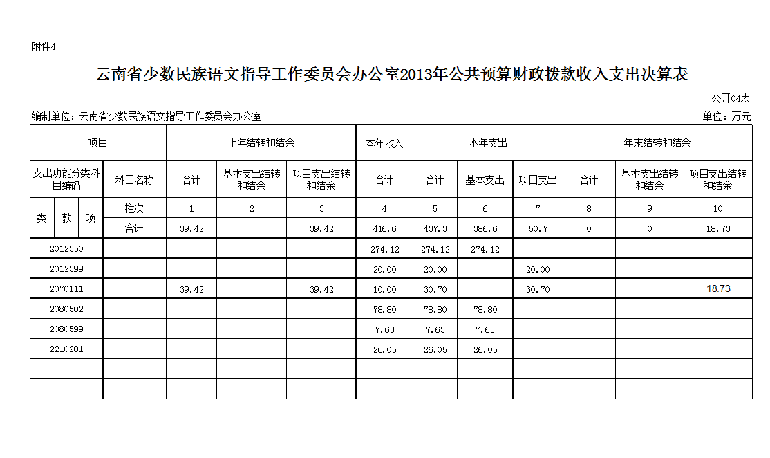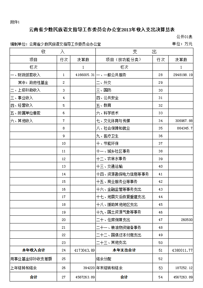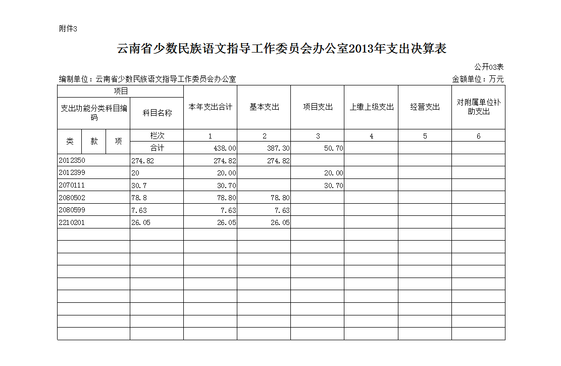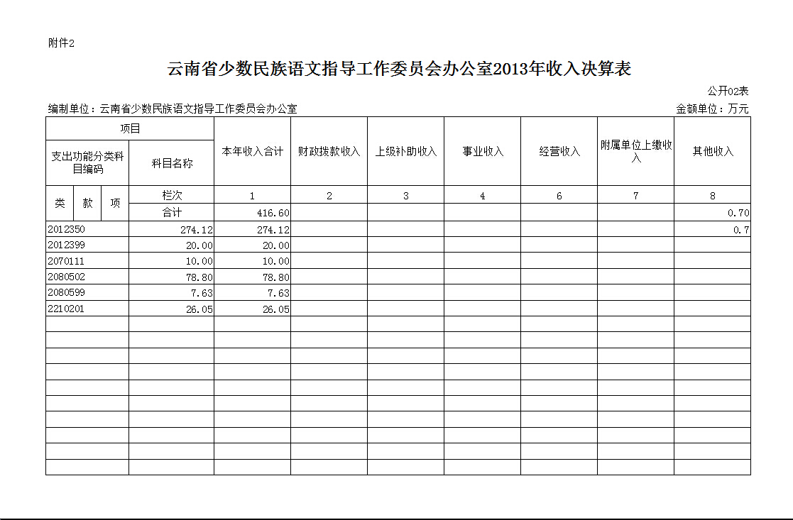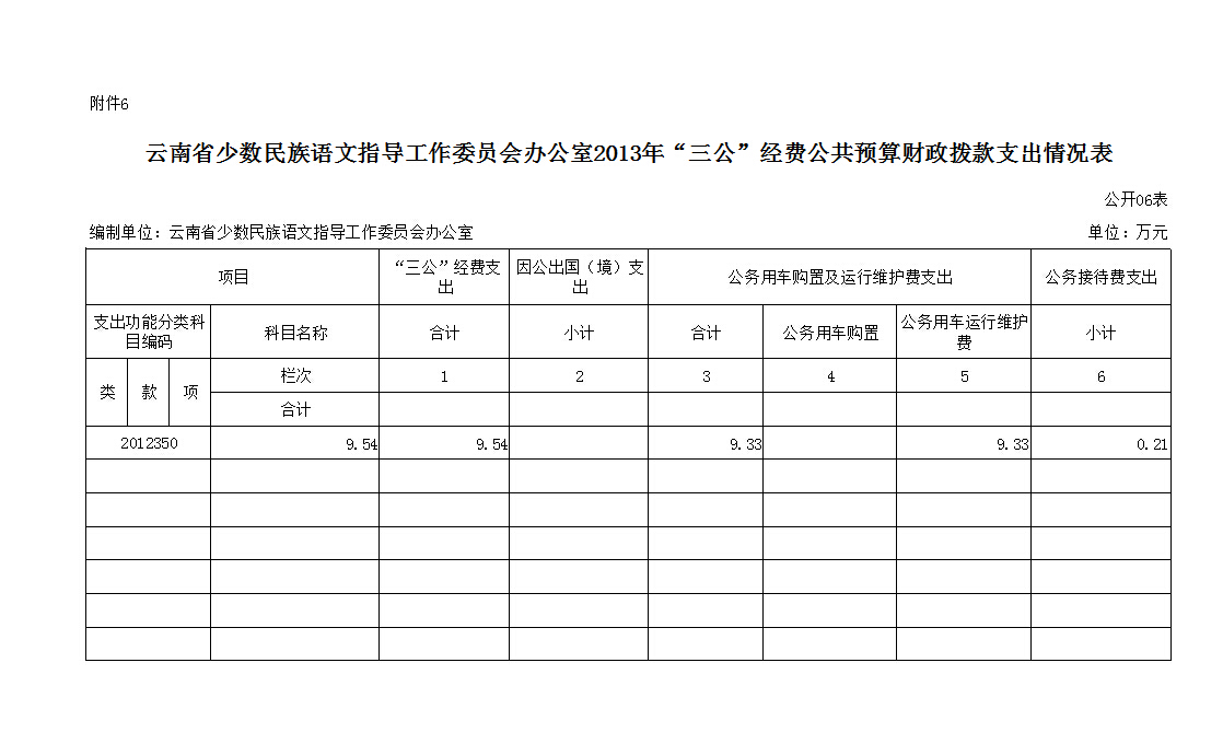 云南省少数民族语文指导工作委员会办公室2013年决算公开表