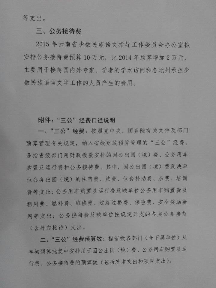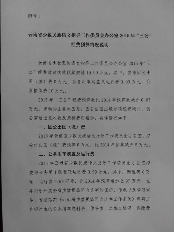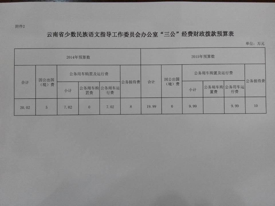 云南省少数民族语文指导工作委员会办公室2015年“三公”经费预算情况说明